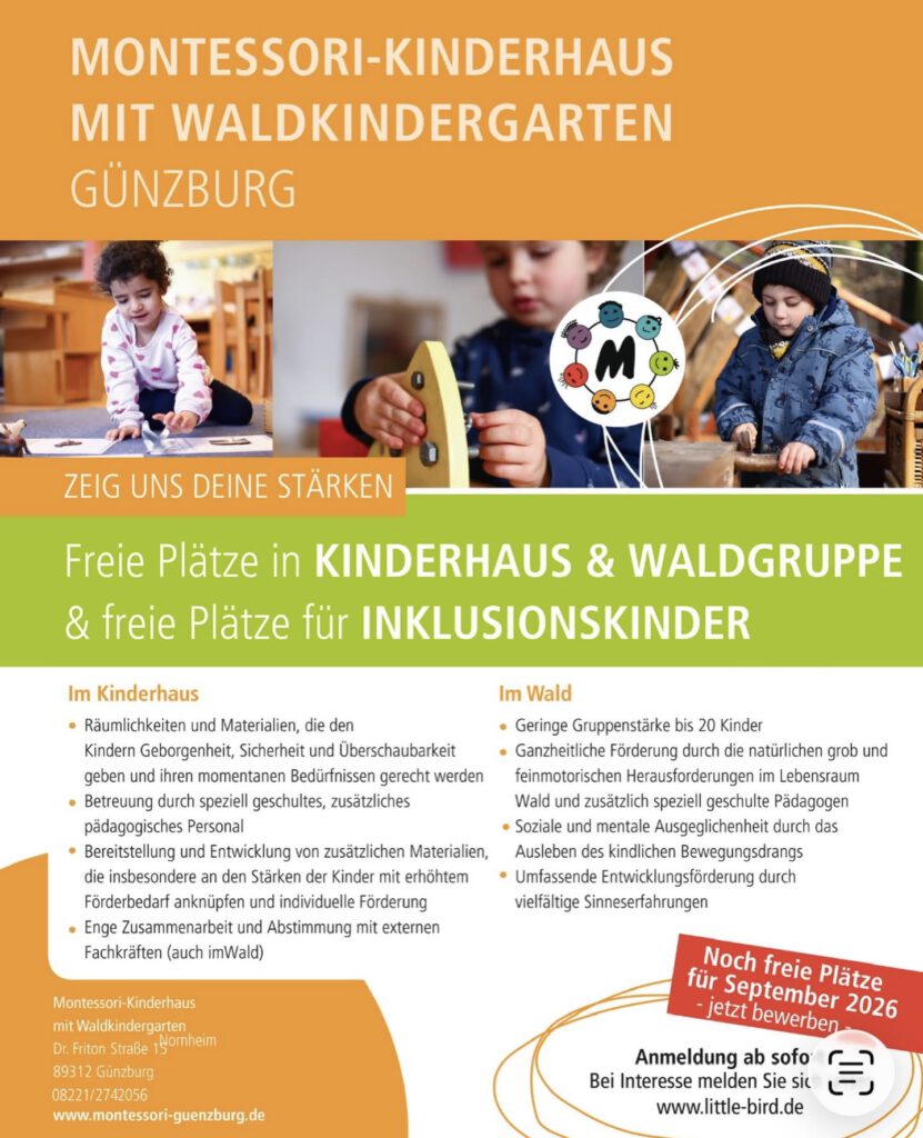 Freie Plätze im Montessori-Kinderhaus mit Waldkindergarten in Günzburg